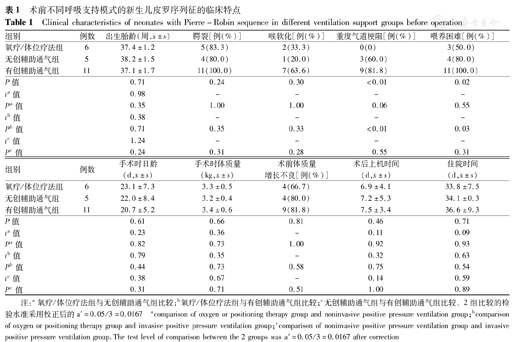 术前不同呼吸支持模式的新生儿皮罗序列征的临床特点