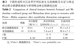 下颌骨成形术后皮罗序列征新生儿枸橼酸芬太尼与咪达唑仑联合镇静镇痛组与单用咪达唑仑镇静组比较