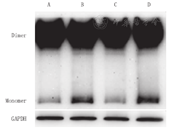 采用TCEP对HUVECs进行处理。结果显示,与eNOS shRNA+SNP组相比,eNOS shRNA+SNP+TCEP组中NO水平(16.112±0.926比16.705±0.116,P>0.05)无显著差异,但eNOS shRNA+SNP+TCEP组中SOD1二聚体/单体比例(4.4±0.9比7.3±2.0,P<0.05)显著降低,见图2、图3。