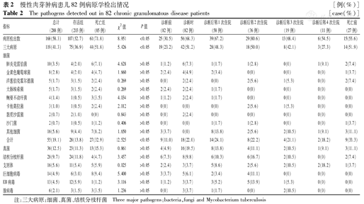 慢性肉芽肿病患儿82例病原学检出情况[例(%)]