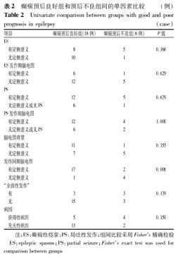癫痫预后良好组和预后不良组间的单因素比较(例)