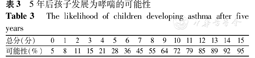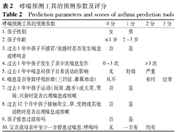 | 哮喘预测工具的预测参数 | 0分 | 1分 | 2分 | 3分 |