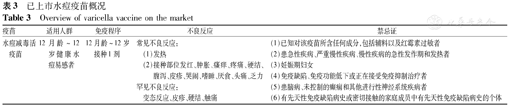 对于孕妇,WHO建议孕期禁止接种水痘疫苗,若育龄期女性接种则应推迟4周怀孕[56]。因接种活疫苗或减毒疫苗后可能存在风险[66]。美国疾控中心(Centers for Disease Control and Prevention,CDC)也建议孕妇禁用水痘疫苗[67]。妊娠早期无意接种水痘疫苗后不需要终止妊娠[68]。一项为期10年的调查数据显示,尚无证据表明活产儿罹患先天性水痘综合征,或先天性出生缺陷风险与孕妇接种水痘疫苗相关,但仍需大样本研究数据证实[69]。