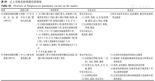 | 13价肺炎球菌多糖结合疫苗(PPV13) | 6周龄~5岁(6岁生日前)婴幼儿和儿童 | 2~6月龄(最小满6周龄)婴儿:共接种4剂,推荐首剂在2月龄(最小满6周龄)接种,基础免疫接种3剂,每剂次间隔2个月;于12~15月龄时加强接种第4剂;推荐首剂在3月龄接种,基础免疫接种3剂,每剂次接种间隔1个月,于12~15月龄时加强接种第4剂7~11月龄婴儿:基础免疫接种2剂,接种间隔至少2个月;于12月龄以后加强接种1剂(第3剂),与第2剂接种至少间隔2个月12~23月龄幼儿:接种2剂,接种间隔至少2个月2~5岁儿童:接种1剂 | 常见不良反应:(1)发热、哭闹、乏力/轻度嗜睡、腹泻、恶心/呕吐、咳嗽(2)注射部位皮肤发红、肿胀、疼痛、硬结罕见不良反应:肌肉痛、瘙痒 | 已知对本品所含成分,包括辅料、破伤风类毒素等过敏者 |