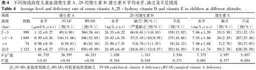 Average level and deficiency rate of serum vitamin A,25-hydroxy vitamin D and vitamin E in children at different altitudes