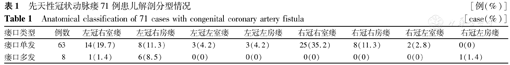 Anatomical classification of 71 cases with congenital coronary artery fistula [case(%)]