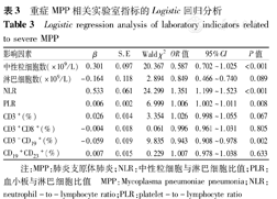 Logistic regression analysis of laboratory indicators related to severe MPP