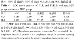 ROC curve analysis of NLR and PLR in ordinary MPP group and severe MPP group