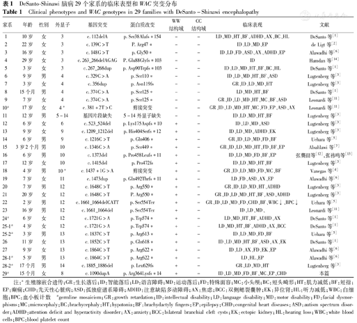 DeSanto-Shinawi脑病29个家系的临床表型和WAC突变分布