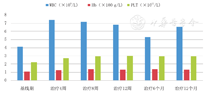 应用贝利尤单抗治疗前,外周血细胞及血红蛋白水平为正常范围;治疗后,外周血白细胞、血红蛋白及血小板水平较基线期改变差异无统计学意义。治疗过程中未发生血细胞计数异常的不良反应(图1)。