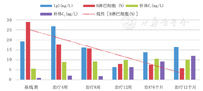 | 例序 | 基线期(mg/L) | 治疗4周 | 治疗8周 | 治疗12周 | 治疗6个月 | 治疗12个月 | |||||