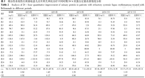 Analysis of 24-hour quantitative improvement of urinary protein in patients with refractory systemic lupus erythematosus treated with Belimumab in different periods