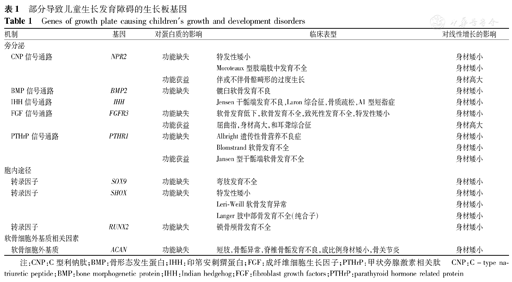 注:CNP:C型利钠肽;BMP:骨形态发生蛋白;IHH:印第安刺猬蛋白;FGF:成纤维细胞生长因子;PTHrP:甲状旁腺激素相关肽 CNP:C-type na-triuretic peptide;BMP:bone morphogenetic protein;IHH:Indian hedgehog;FGF:fibroblast growth factors;PTHrP:parathyroid hormone related protein