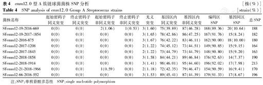 emm12.0型A族链球菌菌株SNP分析 [株(%)]