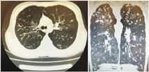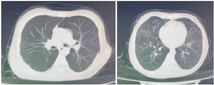 移植前1年患儿活动后胸闷、气促,需吸氧治疗,超声心动图提示三尖瓣反流、肺动脉压轻度增高,胸部CT(图1)示双肺支气管弥漫性扩张、管壁增厚,尤以上肺为著。移植前肺功能:FEV1 39.2%,用力肺活量(FVC)79.9%,呼气峰流速(PEF)59.1%。经评估,患儿反复出现呼吸道感染,FEV1<40%预测值,日间静息状态需氧疗,肺动脉压增高,符合肺移植手术适应证,无禁忌证,于2019年10月(17岁1个月)行双肺移植,术后病理示肺组织内广泛急慢性炎症细胞浸润,多发脓肿灶形成,炎症以支气管周显著,部分支气管腔内脓栓形成。肺组织局部纤维化明显。移植后9个月胸部CT示气管支气管通畅,右肺中叶少许炎性病灶,胸膜未见明显增厚(图2)。术后1年复查肺功能:FEV1 80%,最大肺活量(maximum vital capacity,VCMAX)86.6%,PEF 86.9%,一口气呼吸法肺一氧化碳弥散量(carbon monoxide diffusing capacity single breath method,DLCOSB)81.3%;术后1年9个月肺功能:FEV1 79%,VCMAX 88.4%,PEF 81.6%,DLCOSB 86.4%。至2022年3月,术后2年余,患儿身高166 cm,体重45 kg,无咳嗽、咳痰,活动正常,可爬海拔500余米的山,监测血氧饱和度正常,复查超声心动图正常,移植术后胸部CT示气管支气管通畅,右肺中叶少许炎症病灶,胸膜未见明显增厚。
