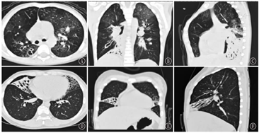 患儿出院后定期随访,随访内容主要包括临床症状、体征以及肺部影像(其中肺部影像学复查时间根据肺部损害程度及恢复情况来定,主要是在出院后1周、1个月、3个月,之后每3~6个月随访)。部分患儿根据病情需再次住院或者在支气管镜日间病房行经支气管镜肺泡灌洗治疗。