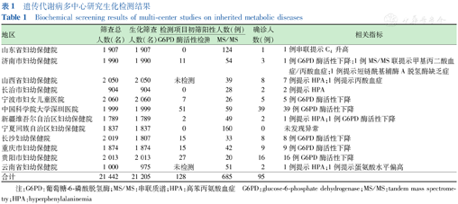 | 贵阳市妇幼保健院 | 2 013 | 18 | 18 | G6PD 16例,GAA 1例,DUOX2 1例 |