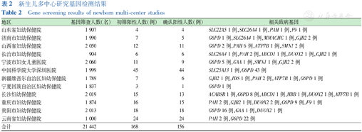 | 地区 | 基因筛查人数(名) | 初筛阳性人数(例) | 确认阳性人数(例) | 相关致病基因 |
