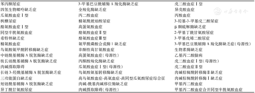 | 苯丙酮尿症 | 3-甲基巴豆酰辅酶A羧化酶缺乏症 | 戊二酸血症Ⅰ型 |