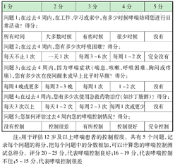 注:用于评估12岁及以上哮喘患者的控制程度。共有5个问题,记录每个问题的得分,把每个问题中的分数相加,可以计算您的哮喘控制测试总得分。评分20~25分,代表哮喘控制良好;16~19分,代表哮喘控制不佳;5~15分,代表哮喘控制很差