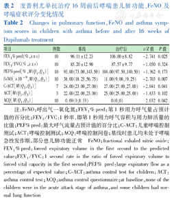 度普利尤单抗治疗16周前后哮喘患儿肺功能、FeNO及哮喘症状评分变化情况