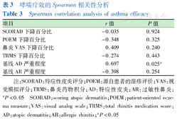 对患儿度普利尤单抗治疗16周后AD、AR相关指标与哮喘疗效(表示为治疗后ICS剂量下降百分比)之间进行Spearman相关性分析,结果见表3。