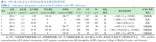 OTC缺乏症患儿6例实验室检查及基因检测结果