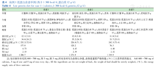 Low protein diet for case 1 (calories:1 300 kcal/d,protein:12 g/d)