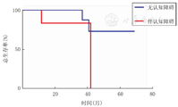进行单倍体异基因造血干细胞移植的不伴认知障碍的ALD患儿,移植后5年不发生MFD的概率为61.6%。移植后3年生存率为100.0%,移植后5年生存率为72.9%。伴认知障碍的ALD患儿,移植后3年生存率为83.3%(图2)。其中伴认知障碍的ALD患者移植后随访最长时间为42个月,且因原发病进展导致死亡。