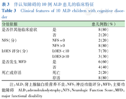 注:ALD:肾上腺脑白质营养不良;NFS:神经功能评分;MFD:主要功能障碍 ALD:adrenoleukodystrophy;NFS:Neurologic Function Score;MFD:major functional disability