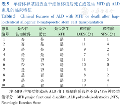 单倍体异基因造血干细胞移植后死亡或发生MFD的ALD患儿的临床特征