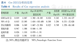 | 影响因素 | P值 | Exp(B) | Exp(B)的95%置信区间 | P值 | 多因素Exp(B) | 多因素Exp(B)的95%置信区间 |