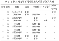 | 1 | 左 | Mondini畸形 | 扩张 | - | - | 扩大 |