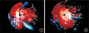 手术均在德国鲁道夫(Rudolf)椎间盘镜系统下完成,全套设备包括显示系统、镜头及光纤、手术通道及特殊手术器械等。A组:完成常规MED手术,术中对黄韧带实行完全切除。B组:与常规MED的不同之处在于对黄韧带的干预方式上的差异。显露好黄韧带后,从其外侧方着手,Kerrison咬骨钳酌情咬除部分上位椎的椎板下缘、关节突的内侧缘以及附着的黄韧带,小刮匙由椎板间隙的外下方向内上方剥离浅层黄韧带;如果黄韧带较厚,以致牵开、显露困难且难以判断神经根是否彻底减压,则咬除浅层黄韧带,保留深层黄韧带。依次游离深层黄韧带的近端、远端及外侧附着缘,使深层黄韧带呈上、下、外侧缘剥离的瓣状结构。摘除突出的椎间盘组织后,松开牵开器,黄韧带可完全覆盖椎板间隙或与周围组织间可留有1个1~2 mm的细小狭缝[3]。见图1、图2。4 ℃生理盐水冲洗伤口(硬膜囊破裂患者只用常温生理盐水冲洗),探查无活动性出血,拔出工作通道,留置橡皮引流卷1枚,缝合腰骶筋膜,关闭切口。