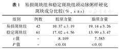 | 稳定斑块组 | 61 | 17.02±4.56 | 13.99±3.47 |