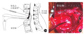 利用后纵韧带钩钩起骨化后纵韧带创造"安全减压间隙",可有效地分离后纵韧带与硬脊膜的粘连,避免骚扰脊髓,减少硬脊膜破损及脊髓损伤。