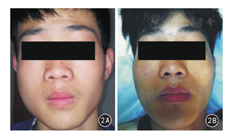 Ⅰ期手术后要求患者每月复查,通过拍摄曲面体层X线片和口腔锥形束CT,观察囊腔变化及成骨情况。检查面部形态、病变区域牙齿松动度、萌出状态及下唇感觉变化。Ⅱ期手术前通过口腔曲面体层X线片测量囊腔长轴,并与Ⅰ期手术前长轴对比,评价Ⅰ期手术疗效:囊腔长轴缩小≥80%为优;缩小50%~79%为良;<50%为差。Ⅱ期手术后要求患者随访2年以上,每次复诊间隔3个月,观察囊肿有无复发。