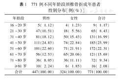 | 61~70岁 | 56(12.53) | 65(20.06) | 121(15.69) | |