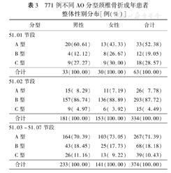 771例不同AO分型颈椎骨折成年患者整体性别分布[例(%)]