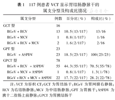 117例患者VCT显示胃结肠静脉干的属支分型及构成比情况