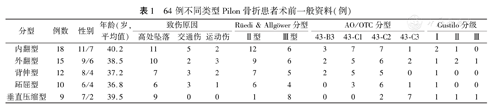 64例不同类型Pilon骨折患者术前一般资料(例)