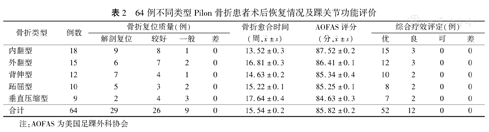 64例不同类型Pilon骨折患者术后恢复情况及踝关节功能评价