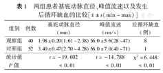 | 组别 | 例数 | 基底动脉直径(mm) | 峰值流速(cm/s) | 后循环缺血(例) |