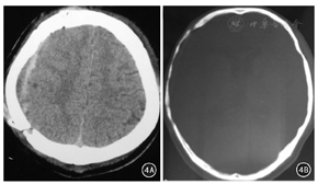 术后24~48 h内拔除引流管,常规更换辅料,12天左右拆线后可出院。术后定期随访,观察患者有无头疼头晕,有无癫痫发生,大脑功能改善情况,观察术后患者头部外观是否对称完美、颅骨是否牢固、有无松动及凹陷等。CT影像检查骨质吸收及生长的情况,骨瓣有无凹陷等。