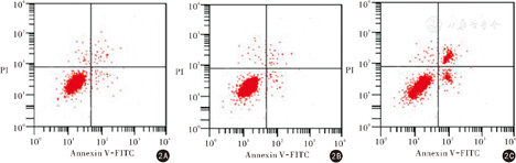 Control组、siRNA-NC组、TPX2 siRNA组细胞转染后在37 ℃、5% CO2饱和湿度的培养箱中继续培养48 h,吸除细胞培养液,用冰预冷PBS洗涤细胞2次,加入0.25胰蛋白酶消化1 min,转移消化液至离心管中,1 000×g离心10 min,弃上清液。加入细胞培养液,调整细胞浓度为106/mL。吸取1 mL的细胞悬浮液,1 000×g离心10 min,弃上清液。加200 μL Binding Buffer、10 μL Annexin V-FITC和10 μL PI,轻轻混匀,避光室温反应15 min或4 ℃反应30 min。再加入300 μL Binding Buffer,用流式细胞仪检测细胞凋亡率。实验重复3次,结果取平均值。细胞凋亡率(%)=细胞凋亡数目/细胞总数×100%。