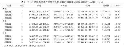 探讨不同年龄段健康人群肱骨头区的骨皮质区域性分布差异。