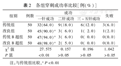 注:与传统组比较,aP<0.05;与改良组比较,bP<0.05