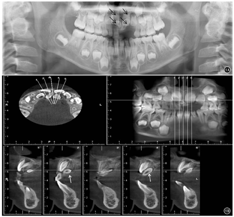 口腔全景片能帮助发现埋伏多生牙,CBCT能清晰显示埋伏多生牙的位置及其与邻牙的关系;根据口腔全景片及CBCT制定精准手术方案,减少手术创伤,推荐临床推广应用。