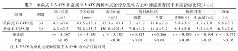 单向式U-VATS和常规U-VATS两种术式治疗原发性右上叶肺癌患者围手术期指标比较(