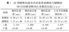 62例腰椎间盘突出症患者患侧组与健侧组3D打印模型椎间孔参数的比较(